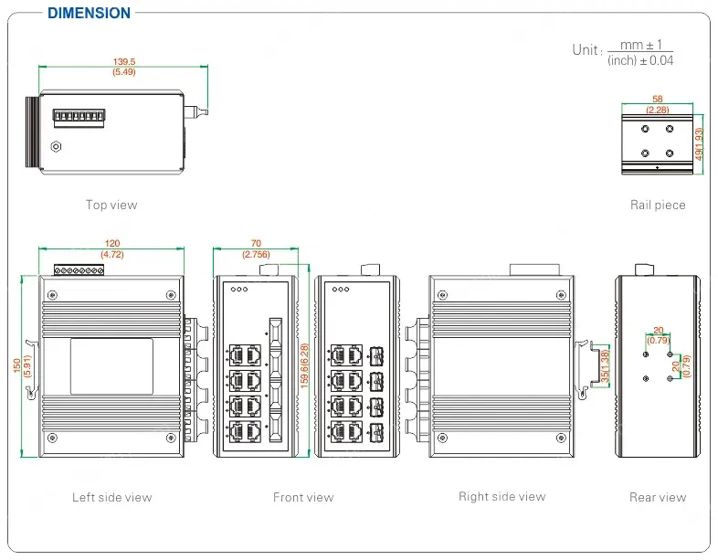 - Auto 10/100Base-T(X), auto MDI/MDI-X