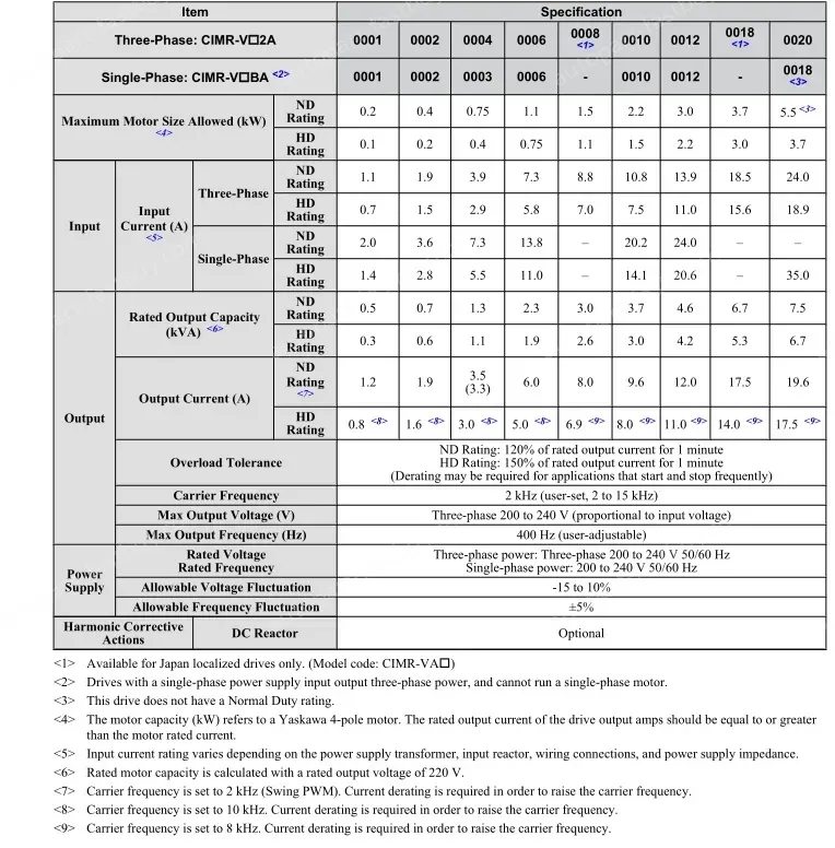 Max. Motor Capacity 0.75Kw;Rated Output Current 3.3A